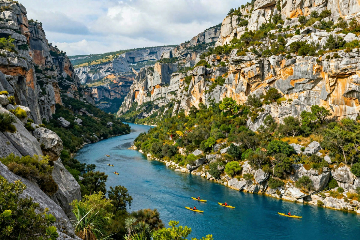 Le Gole del Verdon sono un vero campo di gioco per gli amanti dell’avventura. Gli sport acquatici, in particolare, sono molto popolari. Il rafting e il kayak sono attività che permettono di esplorare il fiume da una prospettiva unica. Navigare tra le rapide offre un’emozione unica, e l’acqua cristallina è perfetta per rinfrescarsi nei caldi giorni estivi. Ci sono diverse aziende locali che offrono noleggi e guide esperte che possono aiutare anche i principianti a vivere quest’esperienza in sicurezza.